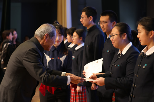 访谈环节结束后,北京叔蘋同学会杜胜勇副会长主持下,第87-88期叔蘋奖学金颁奖典礼热烈举行。经11所设奖中学评选推荐、理事会讨论通过,共计179名中学生获得第87-88期叔蘋奖学金,其中首次获奖学生75人。经过申请材料审核、小组面试、理事会讨论通过,共计119名大学生获得第87-88期叔蘋奖学金,其中6名同学获特等奖、26名同学获一等奖、21名同学获二等奖、25名同学获叔蘋彩虹奖学金、36名同学获大学专项奖学金。另有13名同学因过去一年在同学会工作中的积极表现获得叔蘋贡献奖。在此次颁奖大会中我校周非凡等17名在校生获奖,另外2016届毕业生黄楚妍、2017届毕业生魏依文均已优异的成绩获得大学组特等奖奖项。