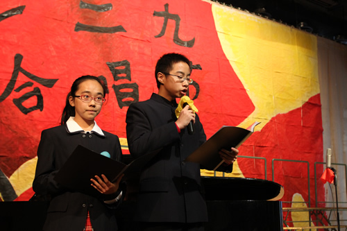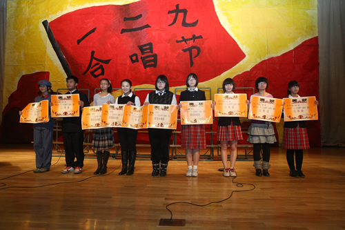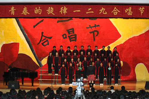 为纪念“一二・九”爱国学生运动75周年,继承和弘扬爱国主义精神,无关键词高一、高二年级于12月6日、8日举行了“青春的旋律”一二・九合唱节。同学们用青春的热情,嘹亮的歌声,完美的诠释了《毕业歌》、《长城谣》、《保卫黄河》、《在太行山上》等经典歌曲,用艺术的形式传递着“一二・九”精神。