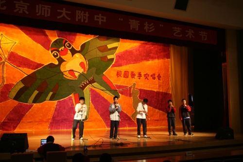 3月23日下午,我校在师大附中礼堂举办了校园歌手欢唱会。这次活动由教导处、校团委等部门联合组织,歌手来自初一、初二、高一、高二四个年级,经自愿报名、严格筛选后产生。欢唱会在一曲《奔跑》中开始,此后,台上台下的热烈气氛始终不减。歌手演唱的曲目有《不再犹豫》、《世界末日》、《江南》等,以当代流行歌曲为主。最后,所有演职人员上台,同唱一曲《真心英雄》,欢唱会在掌声中谢幕。这次盛会是本届“青杉”艺术节继“初一歌咏比赛”后推出的又一个大型校园综艺活动。此后,本届艺术节还将于近期上演“主持人大赛”、“礼仪风采展示”、“话剧展演”等重头戏。一年一度的艺术节,让学生的多种才艺充分发挥,大大丰富了我校学生的校园文化生活。