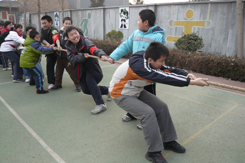 融合活动开展前,服务队的同学们在启蕊楚老师引导下参观了智障学生的教室、活动室、宿舍,还欣赏了他们自己制作的手工艺品。随后,附中的学生和启蕊的学生进行了热闹亲切的拔河比赛及“吹泡泡”游戏。活动结束后,附中的学生们感慨万千,他们不仅从这些残障儿童身上看到了不输常人的坚韧力和创造力,更体会到他们对待生活的认真与热情。