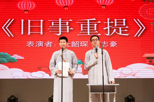 初二年级联欢会在合唱团同学们的国庆献礼《红旗飘飘》的激荡旋律中开幕。脱口秀节目“附中新闻”让同学们的附中记忆如洪水般决堤。歌舞《童年》、舞蹈《舞动青春》、歌曲《树洞》《追光者》等一系列节目,展现了我校初二年级同学的青春风采。