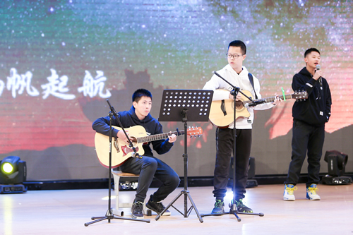 高二年级的演出在歌曲《奔跑》中拉开序幕,一个个缤纷多彩的节目为观众们呈现。有悠扬曲调的长笛表演;有充满温情的话剧《你好、李焕英》;有舞姿优美的《青扇》和《漫慢》,演出在流行音乐社的合唱《盗将行》中圆满落幕。
