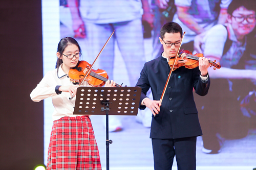 期盼已久的初一年级联欢会在合唱《彩色中国》中拉开帷幕,充满活力的初一学生们带来了现场版的《生命的奇迹》,让我们再次见证了生命的坚强。相声《填表》贴近学生们的日常生活,引得阵阵欢笑。《最弦民族风》、《童年》、《大梦想家》、《杯子舞》等节目轮番袭来,初一学生展现了他们强大的能量,整个会场变成了欢乐的海洋。