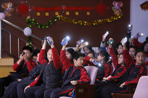 在各年级联欢会开始前王莉萍校长带领学校领导们亲临联欢会现场为师生送去亲切的问候和祝福。王校长在祝福中指出:“附中不仅仅只有学习和考试,还有很多让大家展示风采的活动,希望同学们在2020年继续努力,为自己的青春增添更多的亮丽色彩。”校领导们还带来了福袋,向大家抛出“糖果雨”,同学们都争着想得到一份珍贵的甜蜜。
