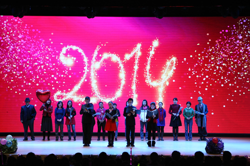 【联欢会开始前校领导集体拜年】