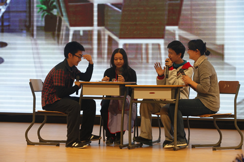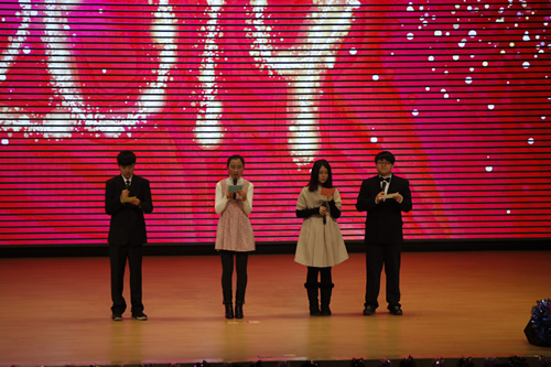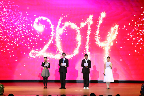 2013年12月30日、31日,伴着新年脚步的临近,合着日益浓郁的节日氛围,我校5个年级的师生,在无关键词礼堂内开展了新年联欢庆祝活动。5场极具趣味的视听盛宴,为年末岁初的节日时节增添了一抹喜庆的色彩。