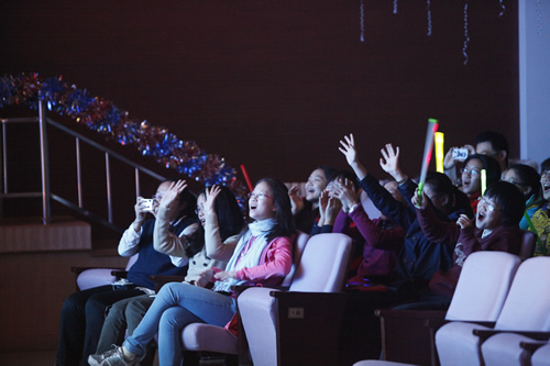 新年联欢是我校一项重要的传统活动。学生联欢会由校学生会全程承办,无论是节目的审查筛选、礼堂的装饰布置,还是后台的道具幕布控制、舞台的效果等,全由学生们组织安排,并由学生会成员及学生志愿者实施。这一场场别开生面的新年盛宴,是精彩,是欢声笑语,但更是一份大家努力的结果,一份团结的力量,一份不一样的收获。