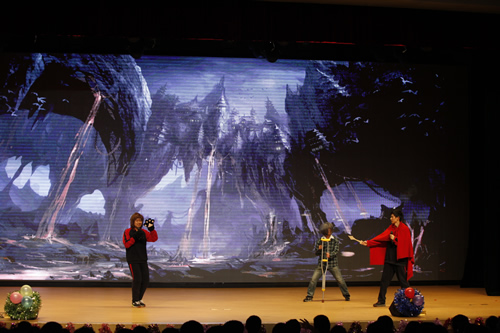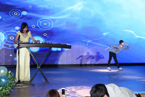 联欢会的节目各具特色,精彩非凡。舞蹈《咏荷》,细腻的展现了莲花的清新雅致;一曲《天空之城》,娓娓的道尽了天空的神秘美好;一台《荆轲刺秦王》,生动的刻画了战国时的君主谋士各异的形象;更有我校金帆舞蹈团新排的民族舞《赞哈》将傣族少女的曼妙身姿展现的淋漓尽致……从传统的民族舞、经典相声、名曲演奏到时尚的街舞、课本剧、流行歌曲演唱,无不亮点层出,趣味无穷。很多年级的老师也准备了自己的节目,与同学们共庆新年。礼堂里不时地响起同学们的掌声、笑声、欢呼声,一派欢快热闹的景象。同学们不仅沉浸在了节日的愉快中,同时,更体会到了附中这个大家庭的温馨与活力。相宜的变换的背景屏幕、绚烂的灯光、有渲染力的音响音效等先进的设施为联欢的顺利举行提供了不可或缺的支持。