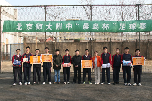 3月2日至4月2日,我校举行了“第十届晨鸟杯足球赛”。经过一个月紧张激烈的角逐,高二(3)班捧走“晨鸟杯”,夺得冠军,高一(1)班获得亚军,高一(10)班、高二(4)班获得第三名。“晨鸟杯”足球赛力求弘扬体育道德、促进体育文明,高一(3)班、高一(7)班和高二(11)班做出表率,获得“精神文明队”称号,国际部获得“最佳表现奖”。足球场上,五个男生配合协作,争取胜利,同时也展现炫目的个人球技。高一(1)班贾新宇、高二(3)班李寂轩以10个进球成为了本届晨鸟杯“最佳射手”。梁原草副校长为获奖班级和个人颁发了奖状和奖品。