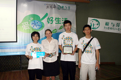 在活动中,小组成员积极参与,他们克服了资金短缺、成员不足,时间紧张等困难,通过采访路人甲乙丙丁,暗访洗车房ABCD,及对学校和周边社区的大量调查,了解大家对水的认识,并将成果汇成一个长约十分钟的节水短片。小组成员完全自主的同金佰利公司联系,用精彩的活动内容为学校争取到了1000元的赞助费。在北京根与芽办公室和金佰利公司的共同帮助下,由小组成员自主设计并制作的节水标牌及标签,本学期正式贴在了学校各个水源处,希望能够时刻提醒大家节约用水。分享会上,我校根与芽小组代表作为首个进行成果展示,得到了根与芽、金佰利以及各校代表的一致肯定与称赞。在中央电视台少儿频道的访问中,小组负责人接受了访问。学校根与芽小组也获得了第四期绿色阳光行动优胜小组的荣誉。