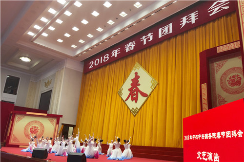 2018年2月14日,党中央、国务院在人民大会堂举行春节团拜会,经各方推荐及导演团队策划遴选,我校金帆舞蹈团参加了今年中 央春节团拜会的文艺演出。