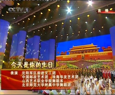 无关键词齐峰老师参与编导,22名舞蹈团成员参加演出的新中国成立60周年庆典晚会“祖国万岁”于9月29日(周二)20:00~22:00在中央1、3、4、9套同时进行了直播。我校舞蹈团参加表演的节目有《鲜花的祝福》、《今天是你的生日》、《十月礼赞》、《我爱你中国》。此次演出取得了圆满成功。刘沪校长,梁原草副校长应邀出席了庆典晚会。