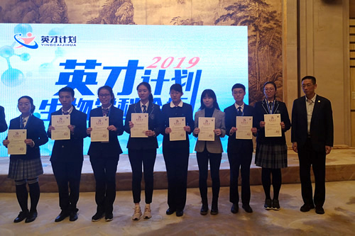2019年11月14日至12月8日期间,英才计划五学科英才论坛在全国五个地点相继展开,我校王乐蓓(高二八班),杨益欣(高二九班)两名同学入选了在安徽合肥举办的生物学科论坛。活动经历了紧张的布展、笔试、封闭答辩,在颁奖环节中,英才计划生物学科工作委员会主任、中国科协副主席、西湖大学校长施一公院士亲自给同学们颁发证书并发言。最终,我校两位同学均获得优秀学员称号,尽展“英才”风采。指导教师为科技组张亚老师。